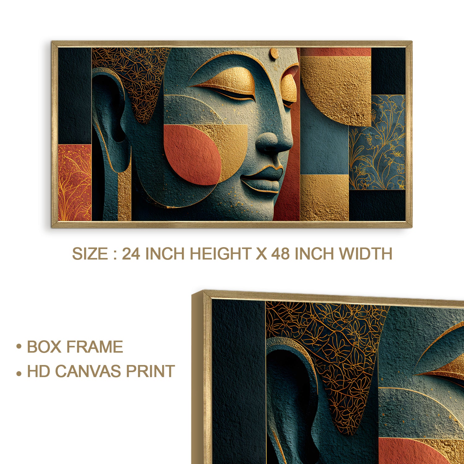 Abstract Buddha Face Wall Art, HD Canvas Print, Golden Box Framed, Ready to Hang, (24 In x 48 In) (BUDDHA-WA-23)