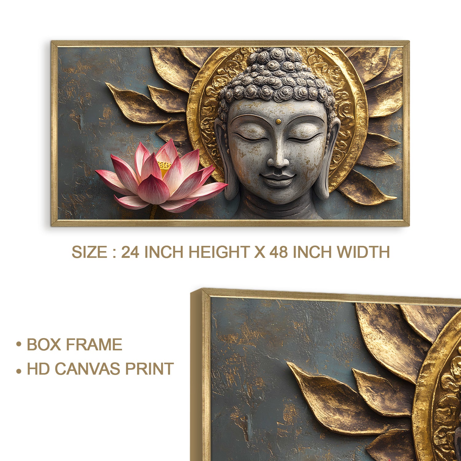 Divine Buddha & Lotus Blossom Wall Art, HD Canvas Print, Golden Box Framed, Ready to Hang, (24 In x 48 In) (BUDDHA-WA-10)