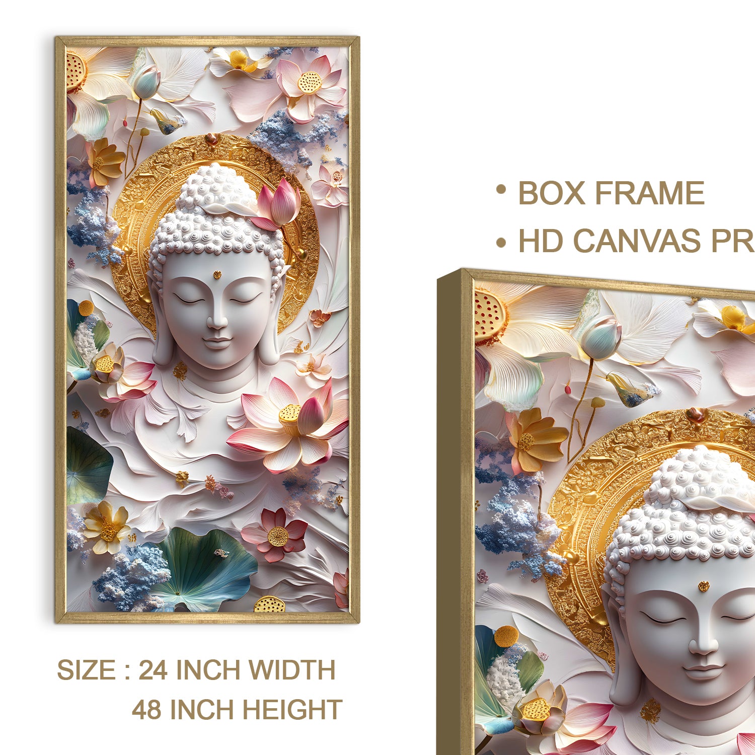 Serene White Buddha Portrait Wall Art, HD Canvas Print, Golden Box Framed, Ready to Hang, (48 In x 24 In) (BUDDHA-WA-31)