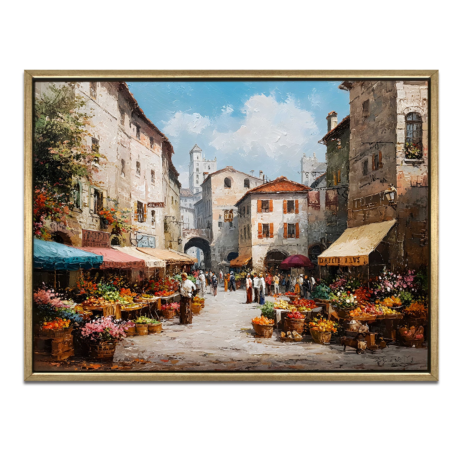 European Cityscape Wall Art, HD Canvas Print, Golden Floater Framed, Ready to Hang, (36 In x 48 In) (EURO-WA-68)