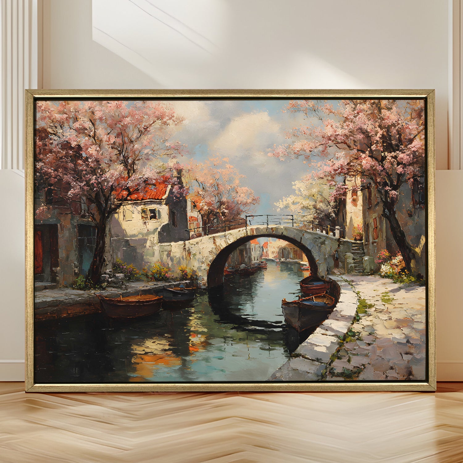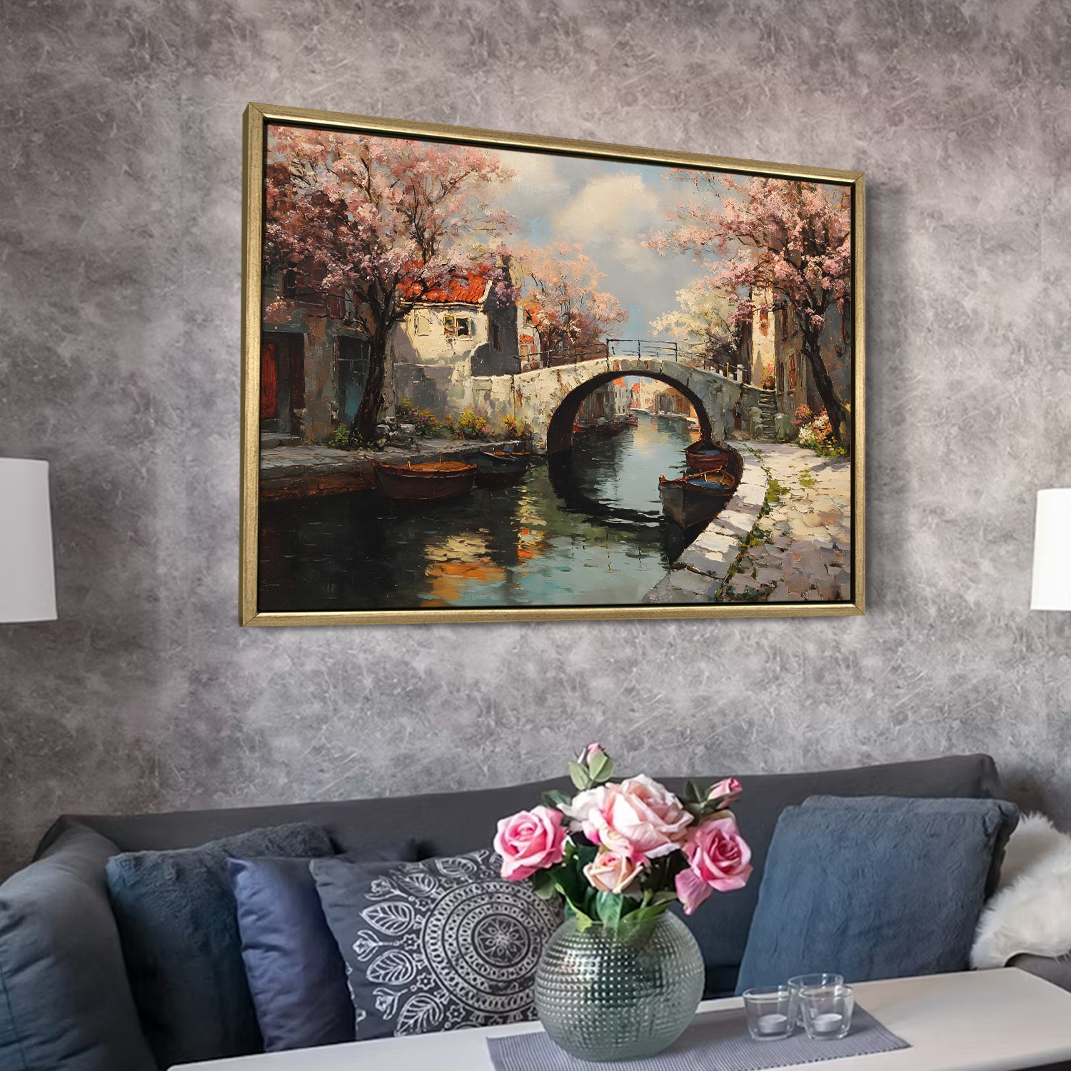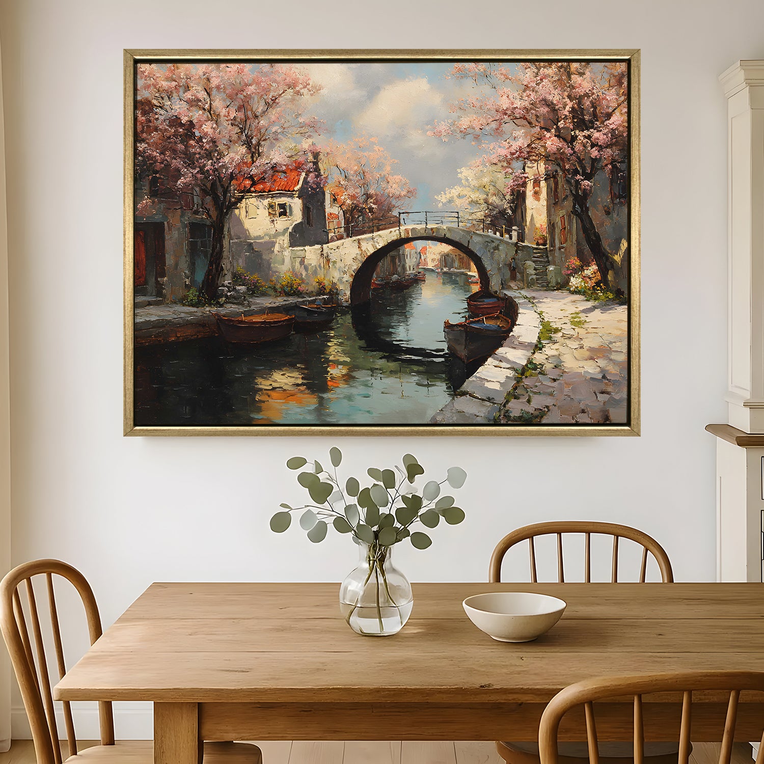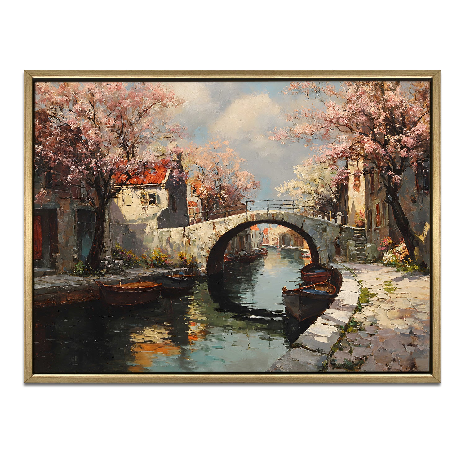European Cityscape Wall Art, HD Canvas Print, Golden Floater Framed, Ready to Hang, (36 In x 48 In) (EURO-WA-69)