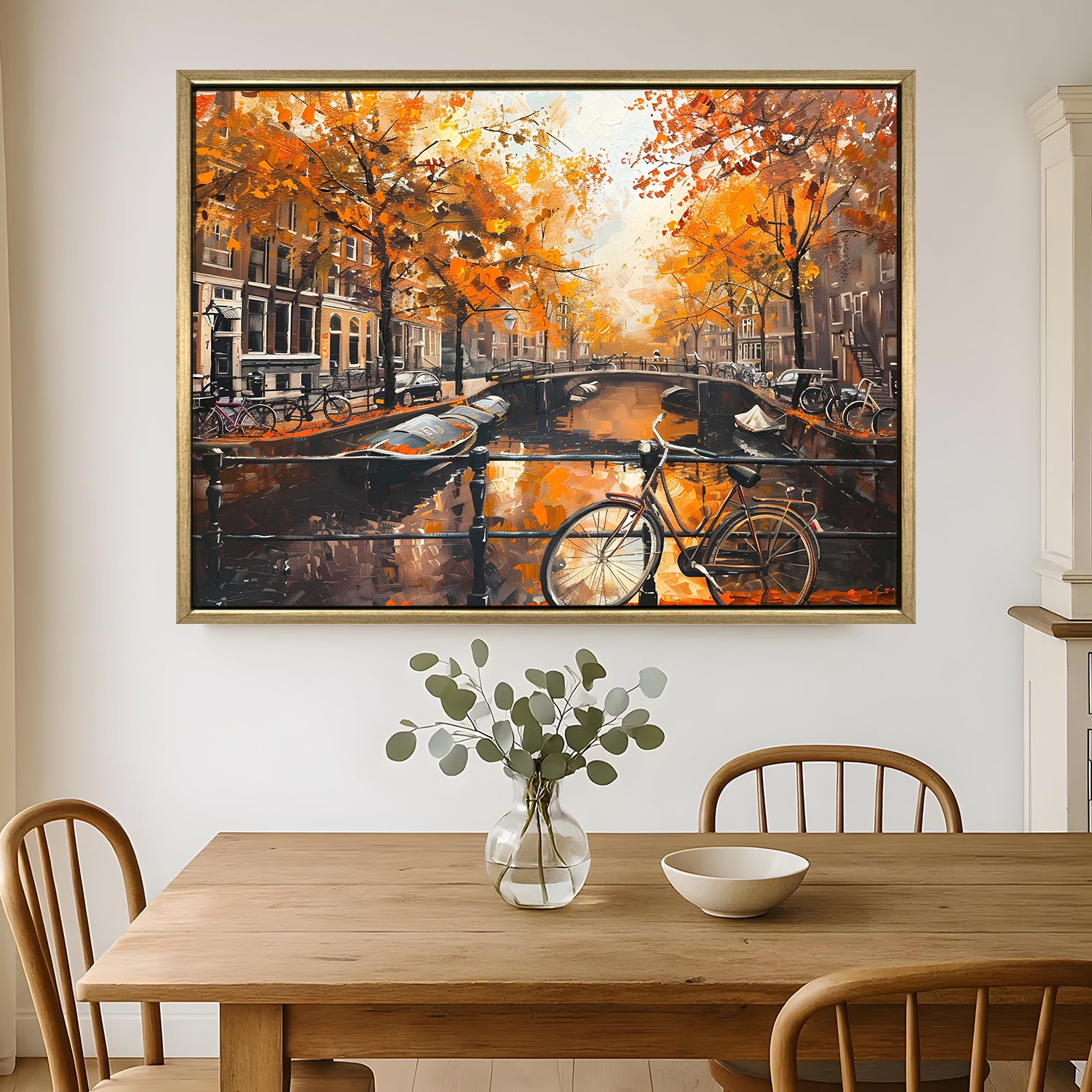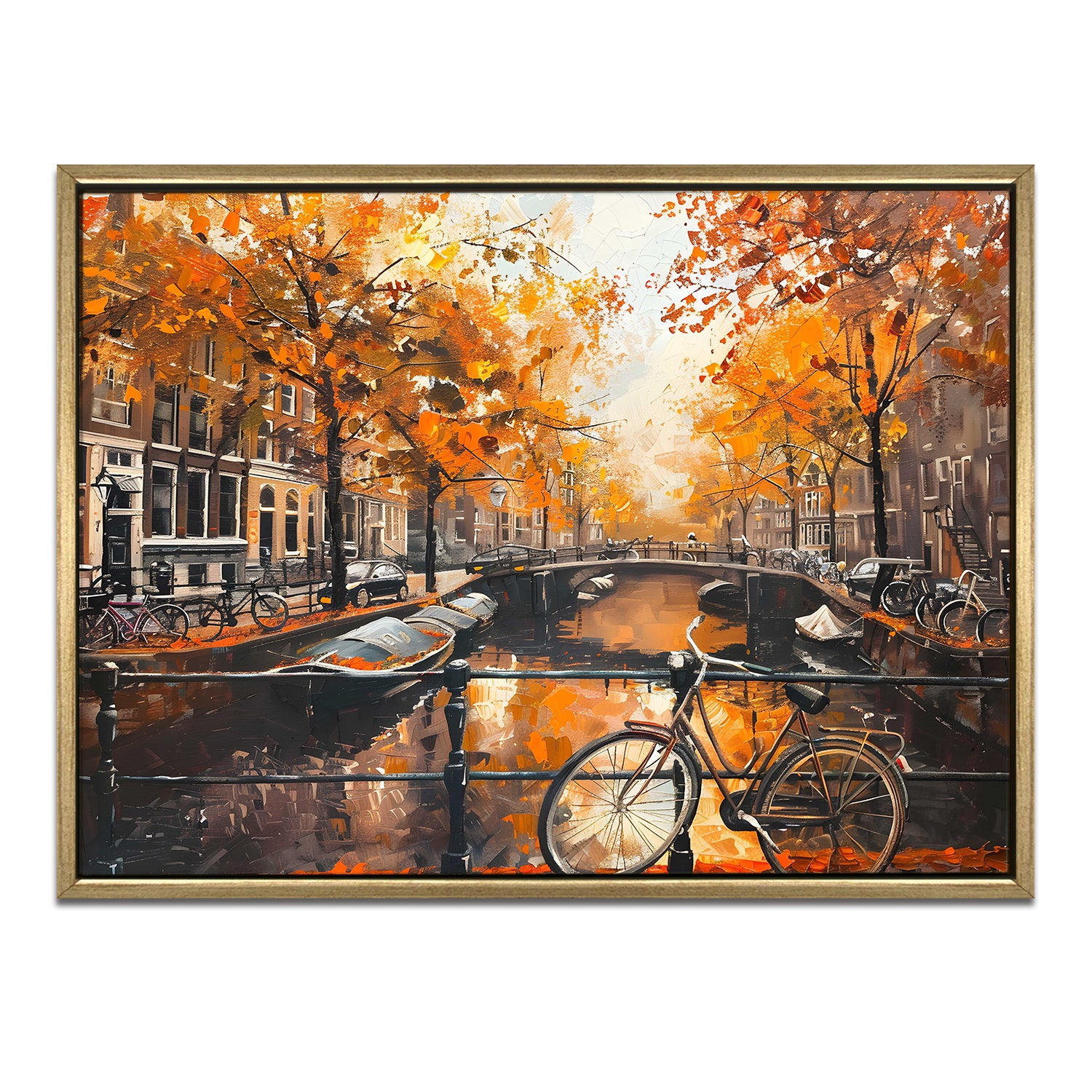 European Cityscape Wall Art, HD Canvas Print, Golden Floater Framed, Ready to Hang, (36 In x 48 In) (EURO-WA-76)