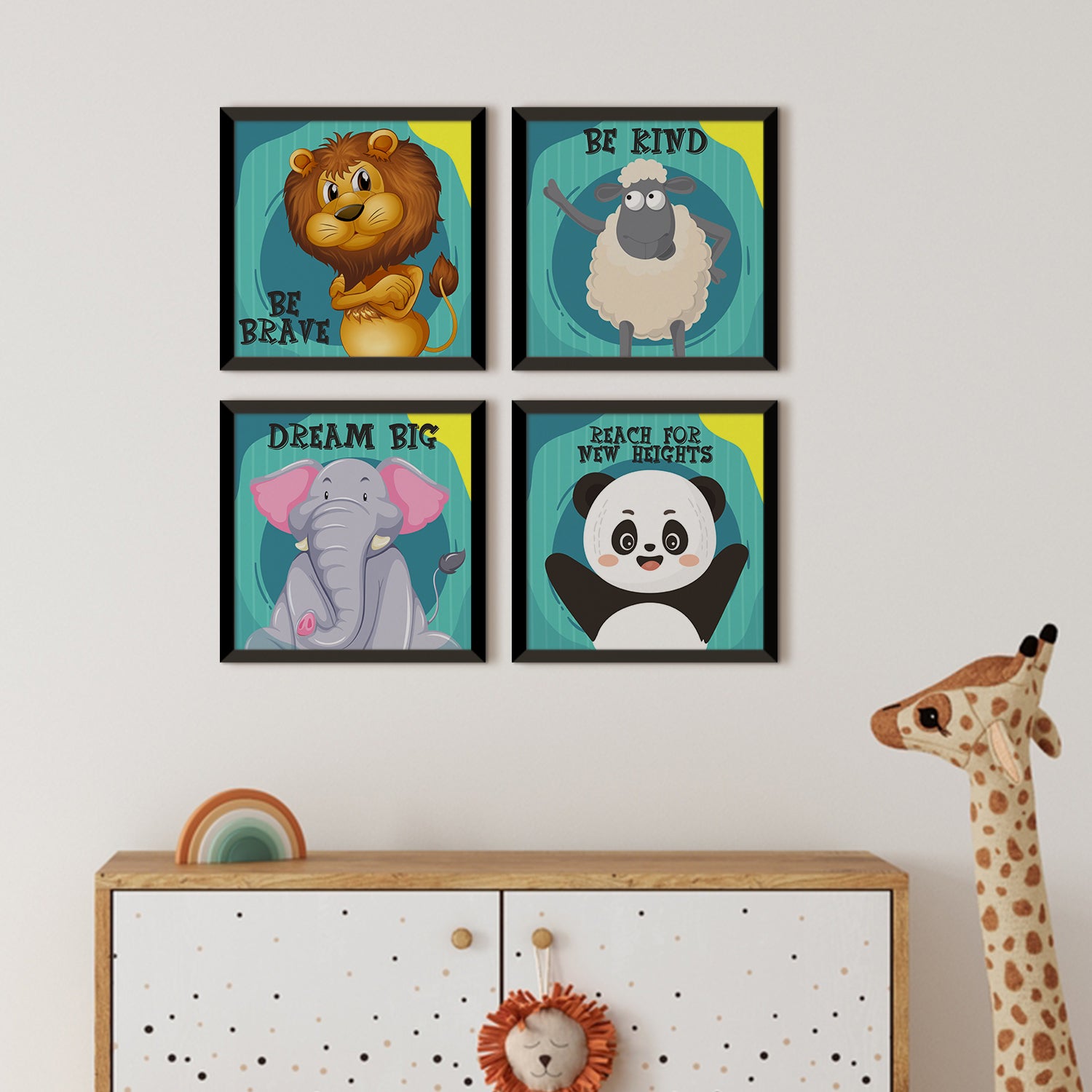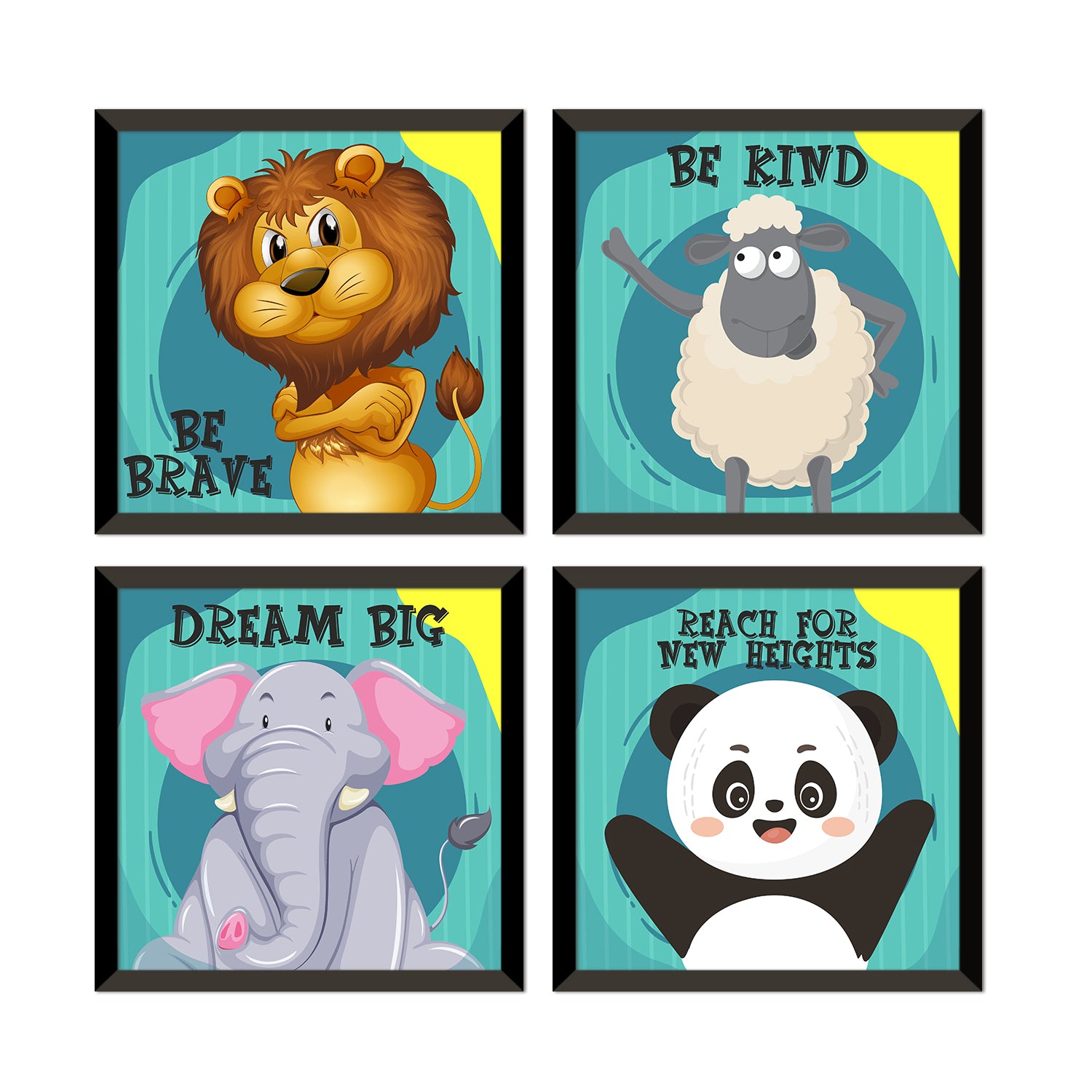 Kids Wall Art Set of 4 | HD Canvas Print | Ready to Hang | Black Framed Kids Room & Nursery Room Decor | Each Frame Size: 10X10 INCH (KIDSET01)