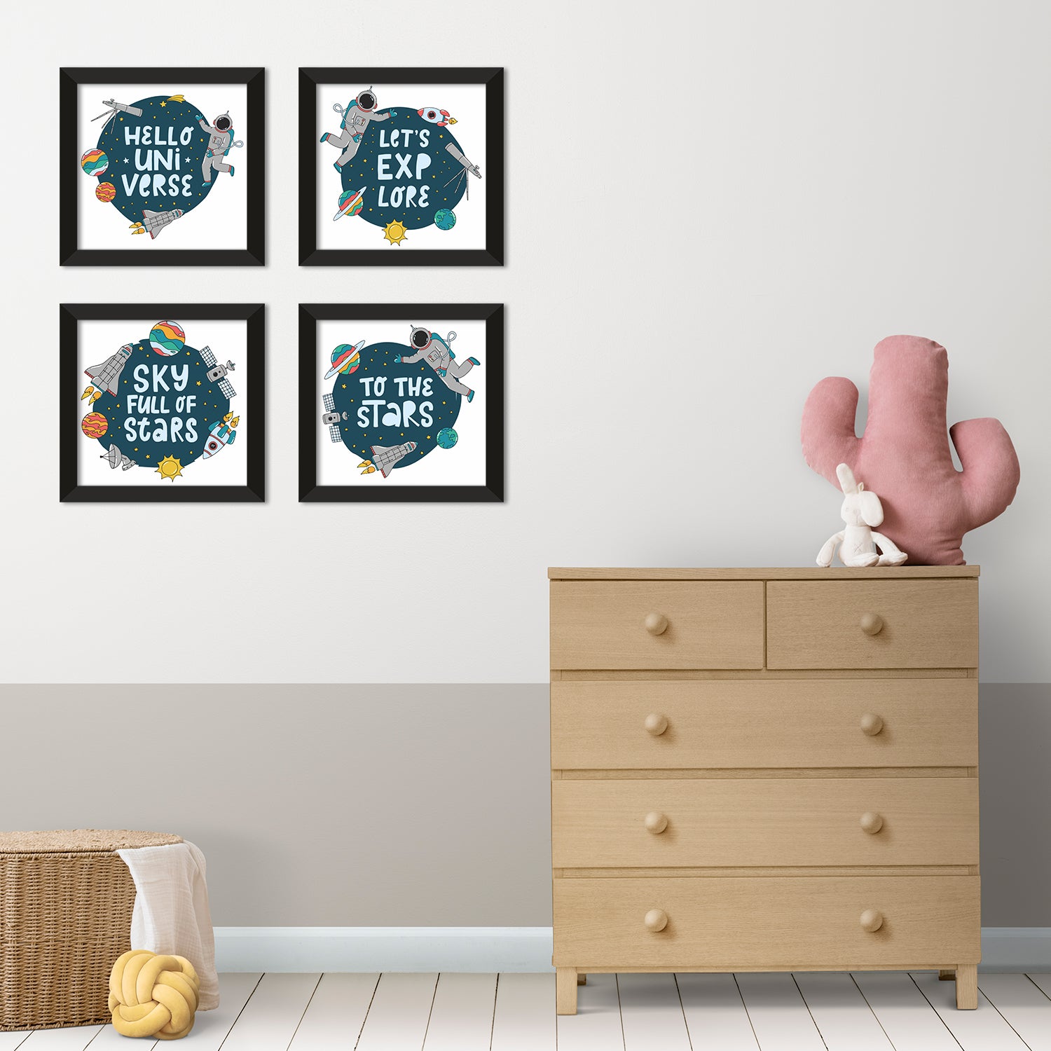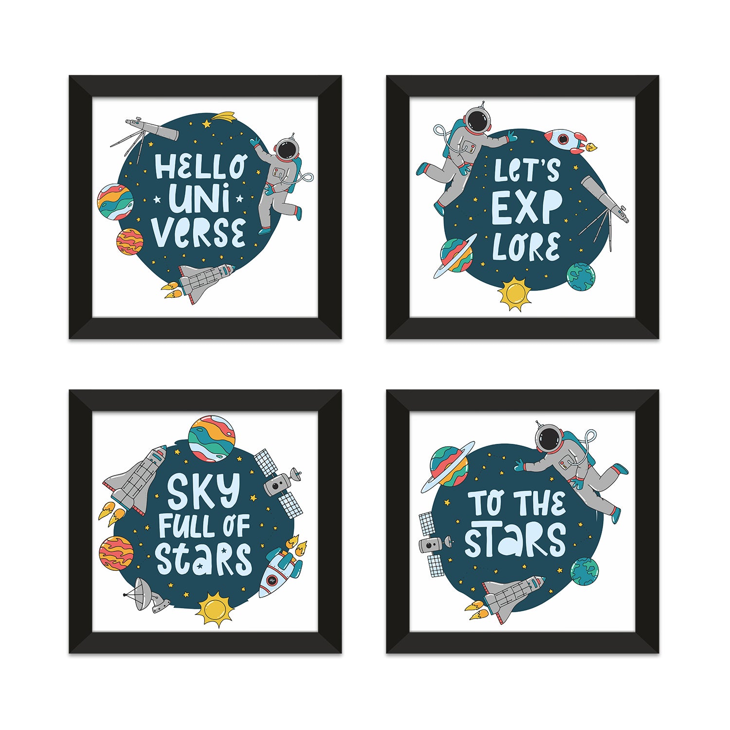 Kids Wall Art Set of 4 | HD Canvas Print | Ready to Hang | Black Framed Kids Room & Nursery Room Decor | Each Frame Size: 10X10 INCH (KIDSET07)