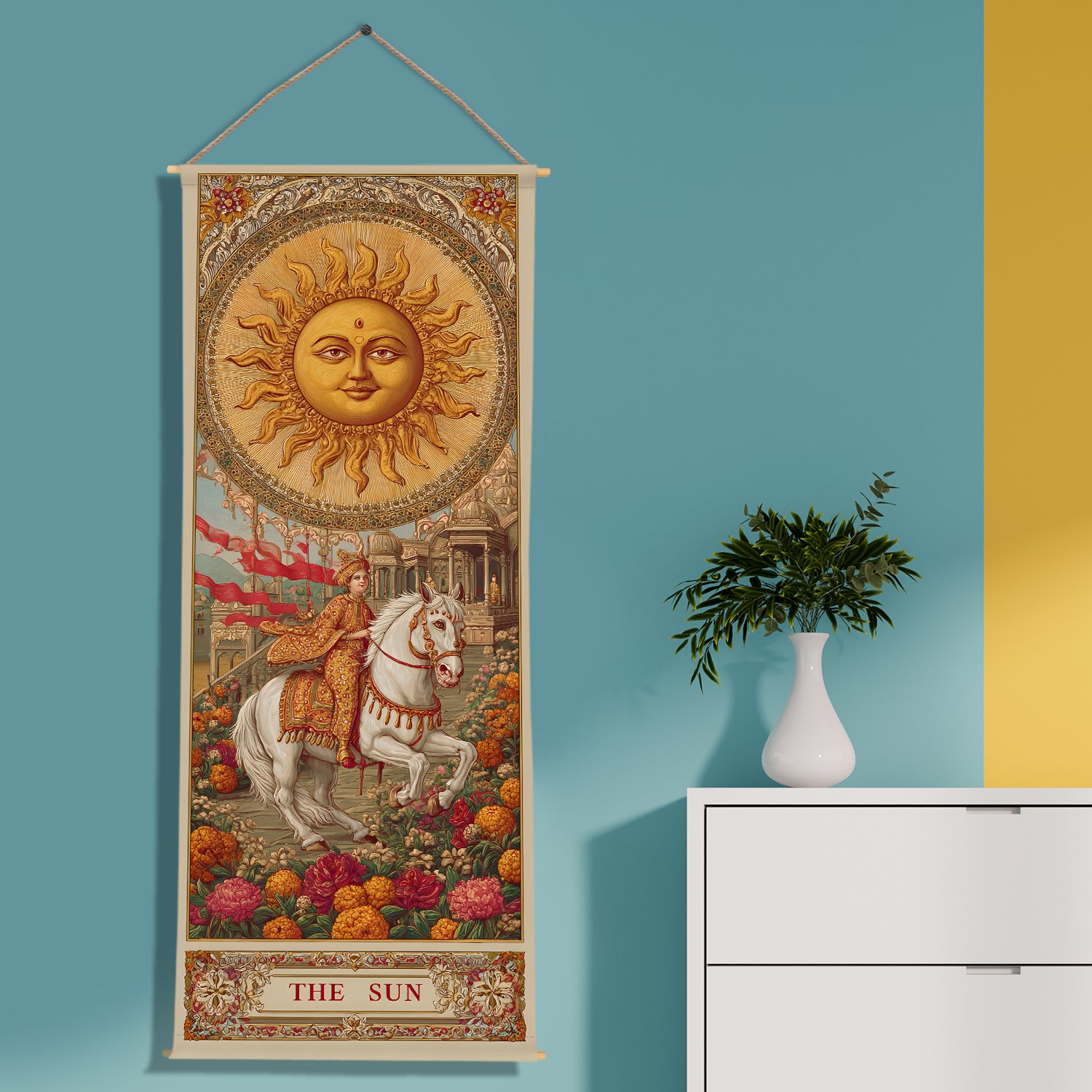 Indian Sun Tarot Wall Hanging Tapestry, Thick fabric, HD Print, Ready to Hang Wall Décor. Size 24 In x 60 In (TAROTTPS01)