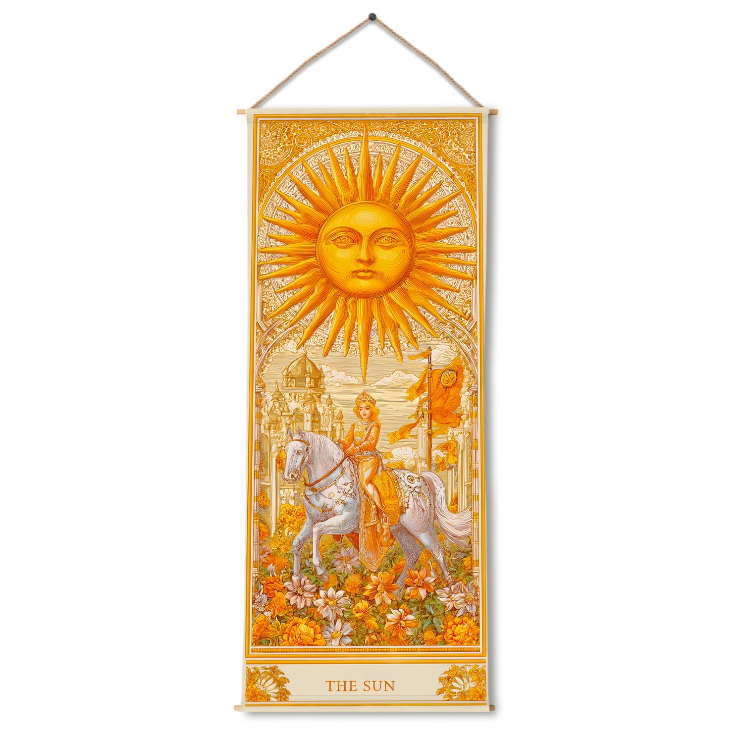 Indian Sun Tarot Wall Hanging Tapestry, Thick fabric, HD Print, Ready to Hang Wall Décor. Size 24 In x 60 In (TAROTTPS02)