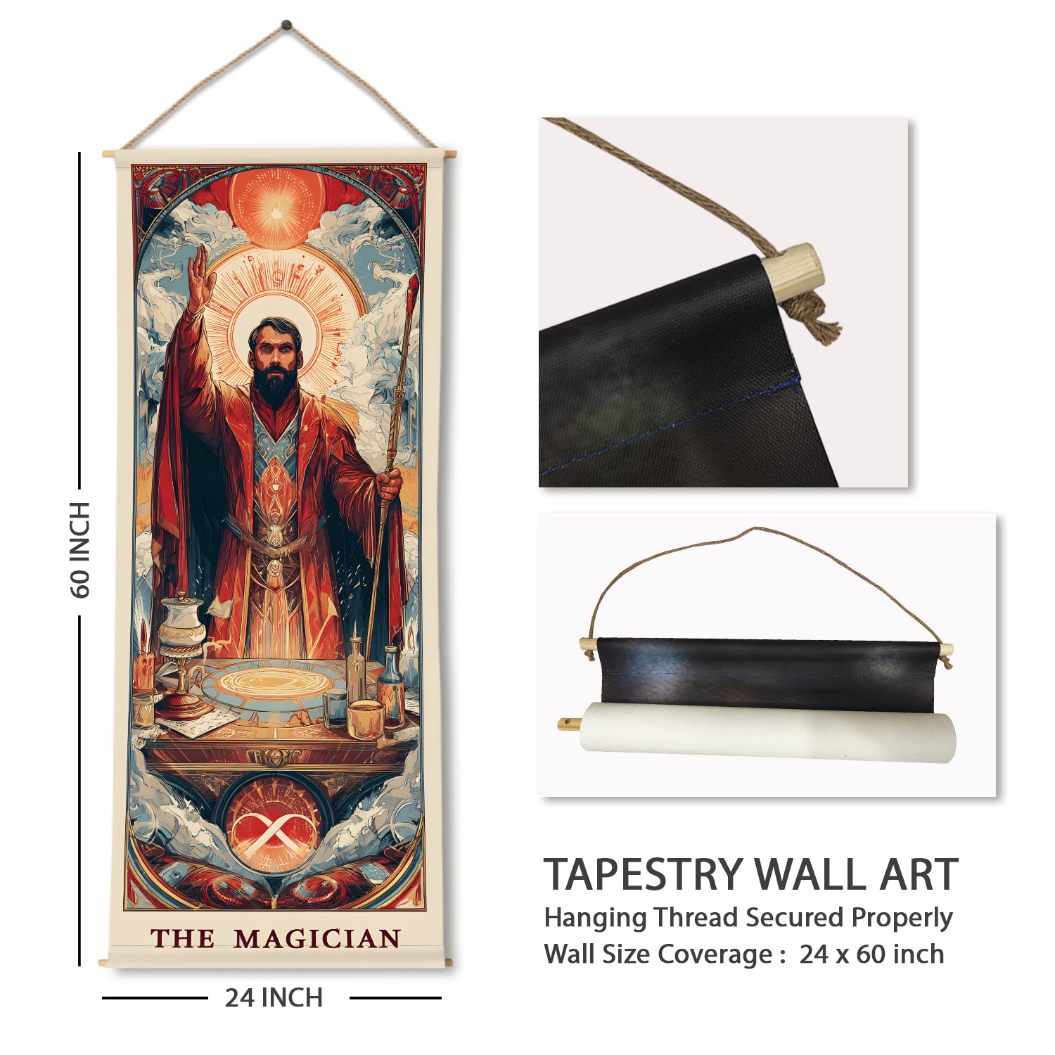 The Magician Tarot Wall Hanging Tapestry, Thick fabric, HD Print, Ready to Hang Wall Décor. Size 24 In x 60 In. (TAROTTPS13)