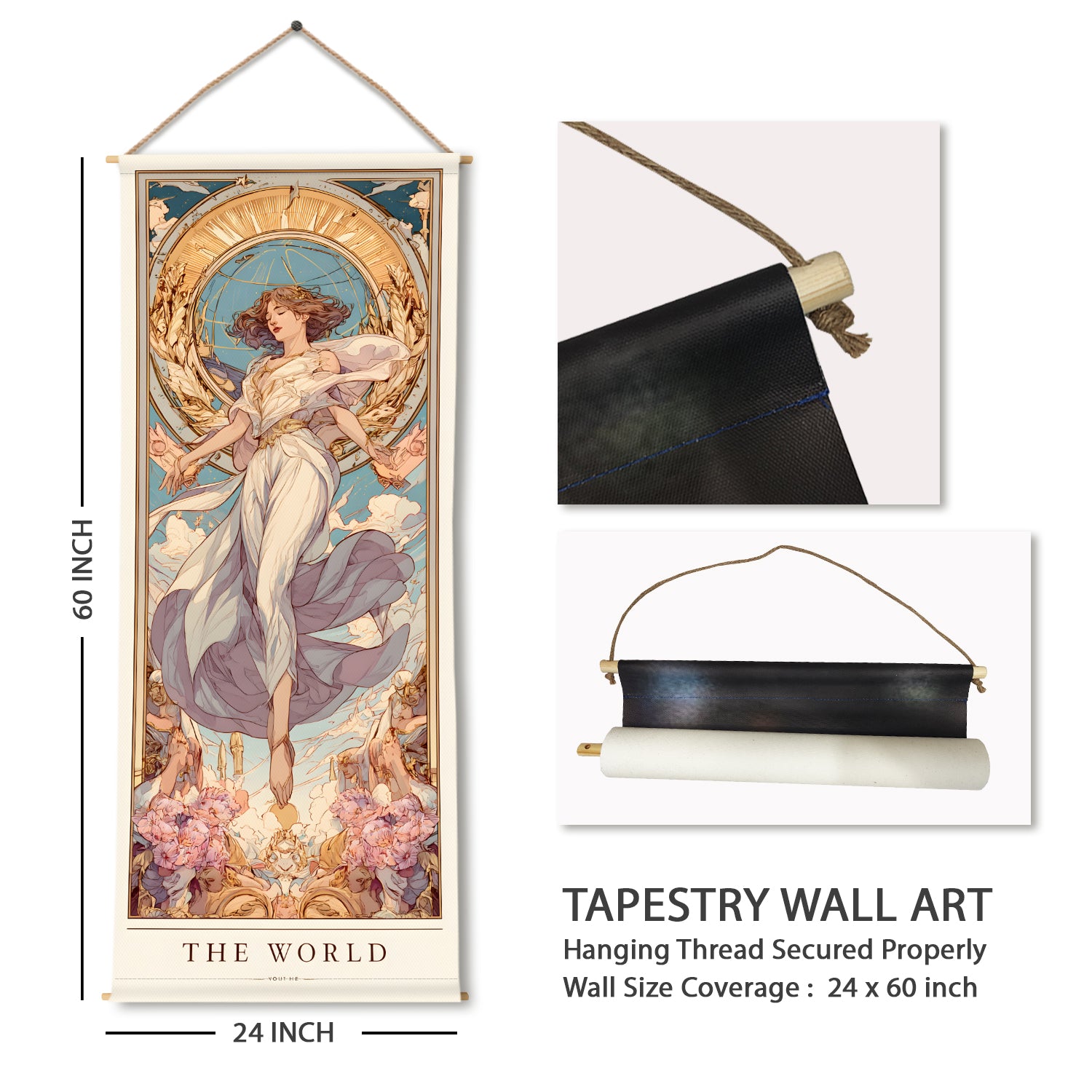 The World Tarot Wall Hanging Tapestry, Thick fabric, HD Print, Ready to Hang Wall Décor. Size 24 In x 60 In. (TAROTTPS15)