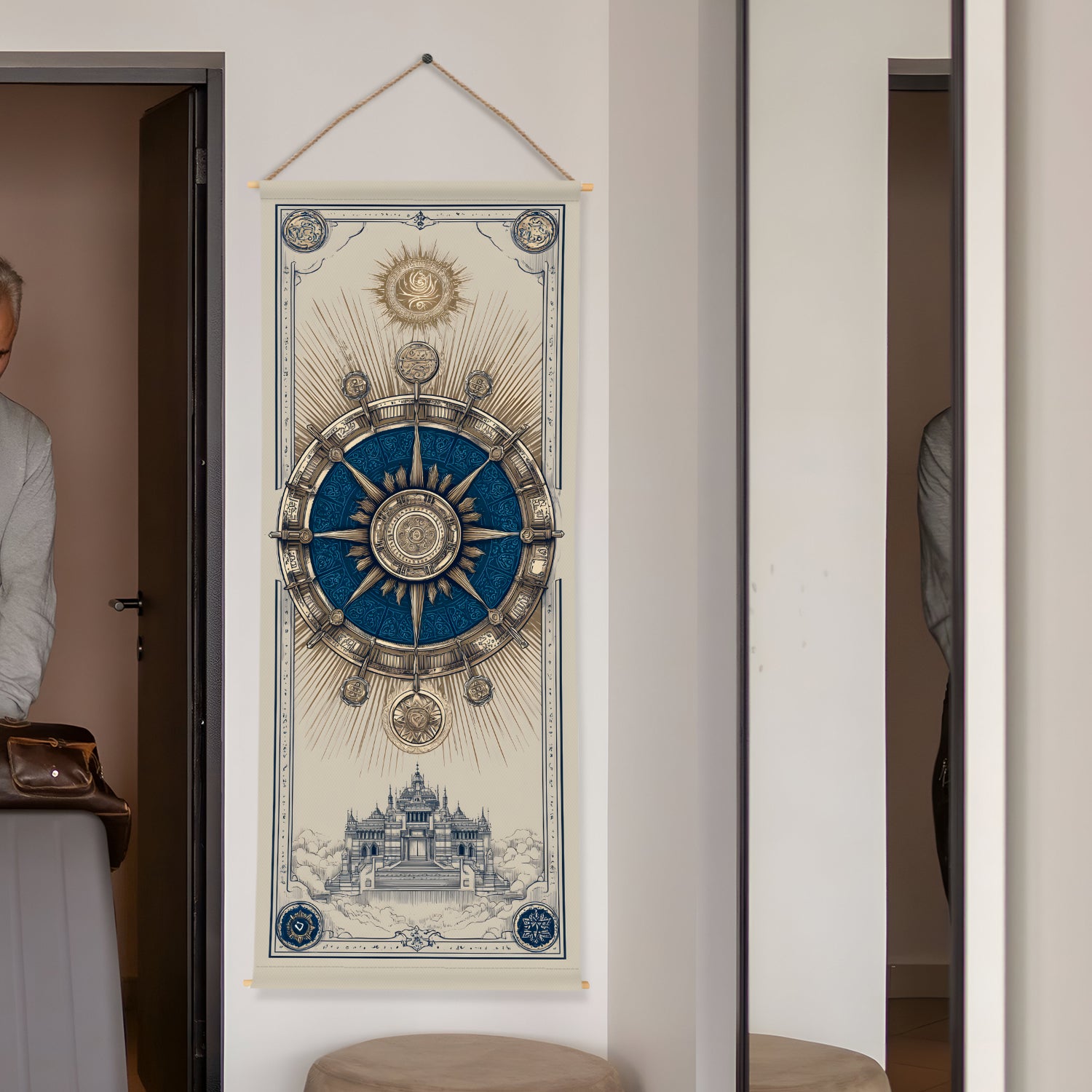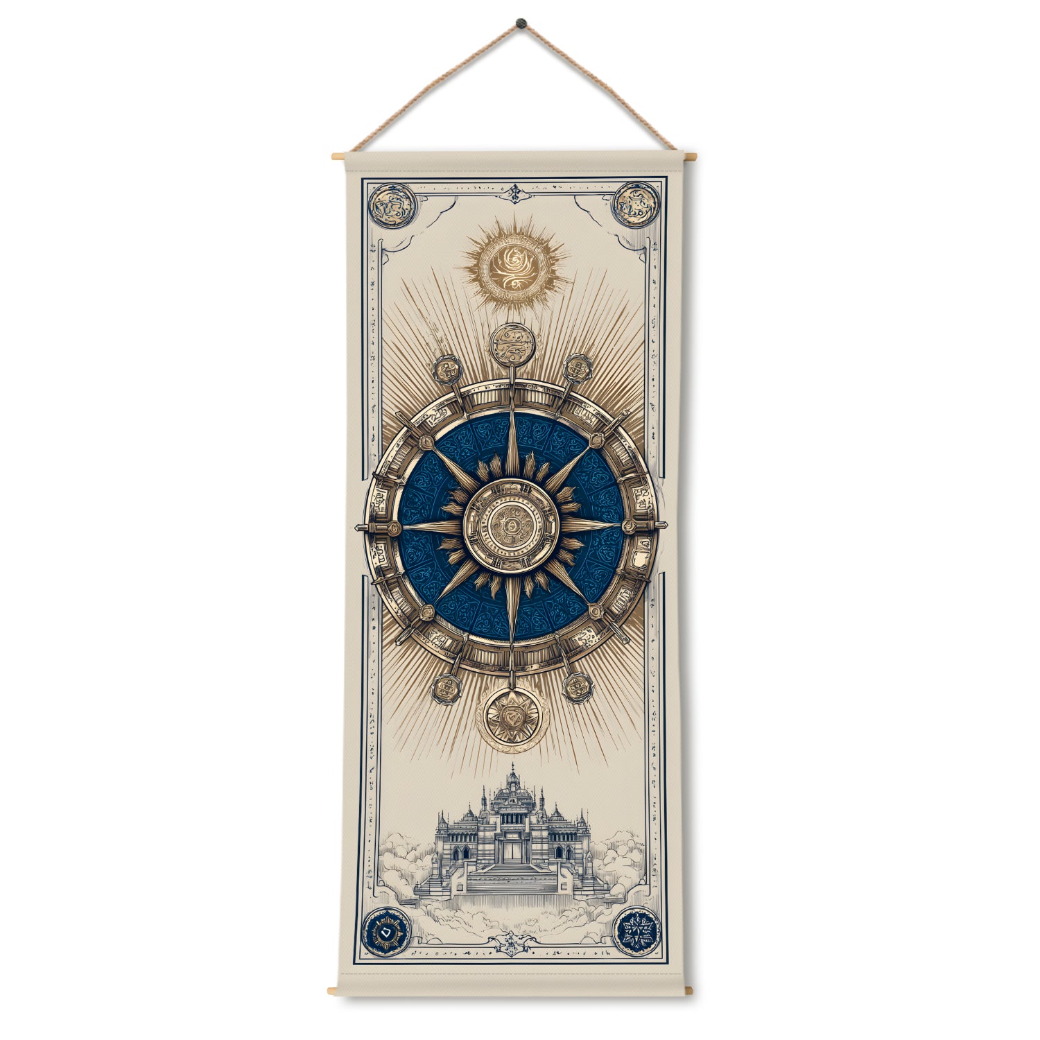 Wheel of Fortune Tapestry | Mystic Mandala Wheel Wall Hanging, Thick fabric, HD Print, Ready to Hang Wall Décor. Size 24 In x 60 In. (TAROTTPS11)