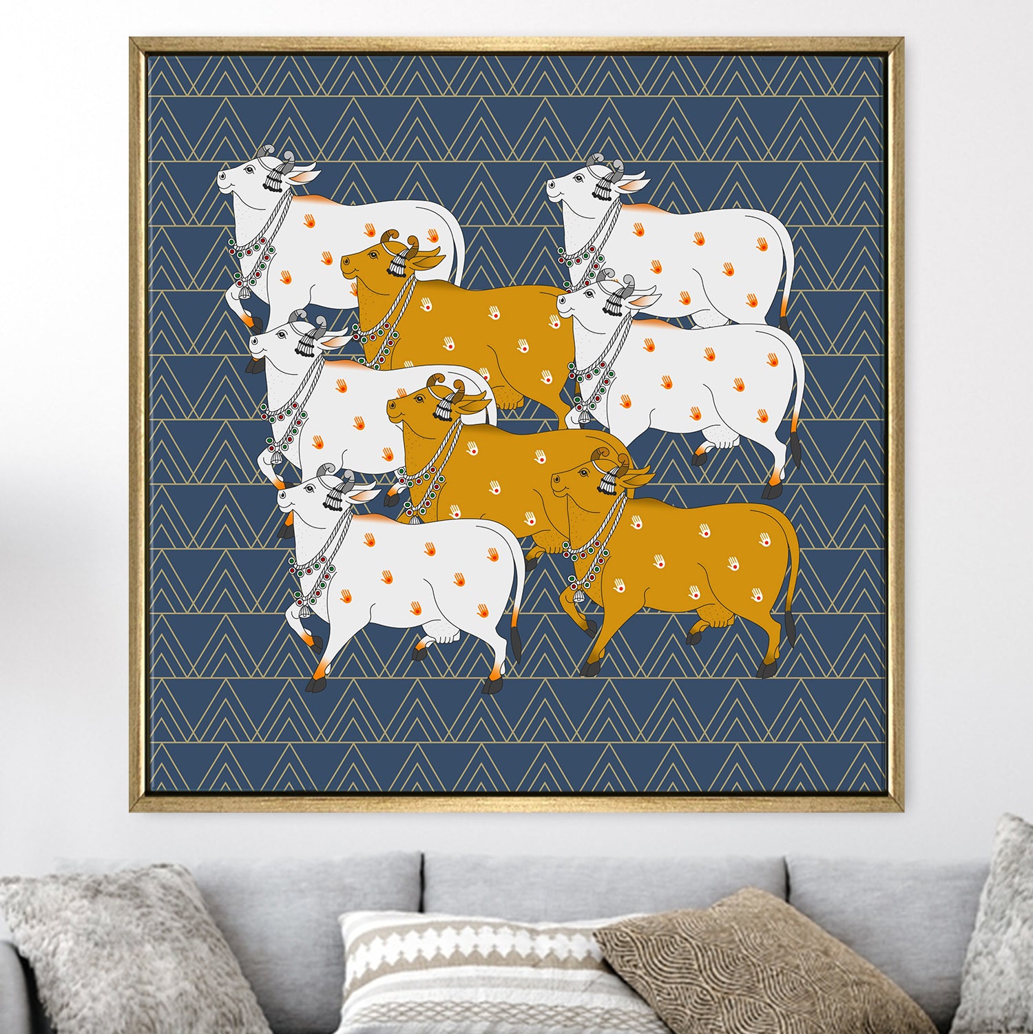 Elevate your living space with our meticulously crafted, luxurious Pichwai canvas painting. This masterpiece exudes opulence and cultural richness, designed to captivate the beholder with its intricate details and vibrant hues.
