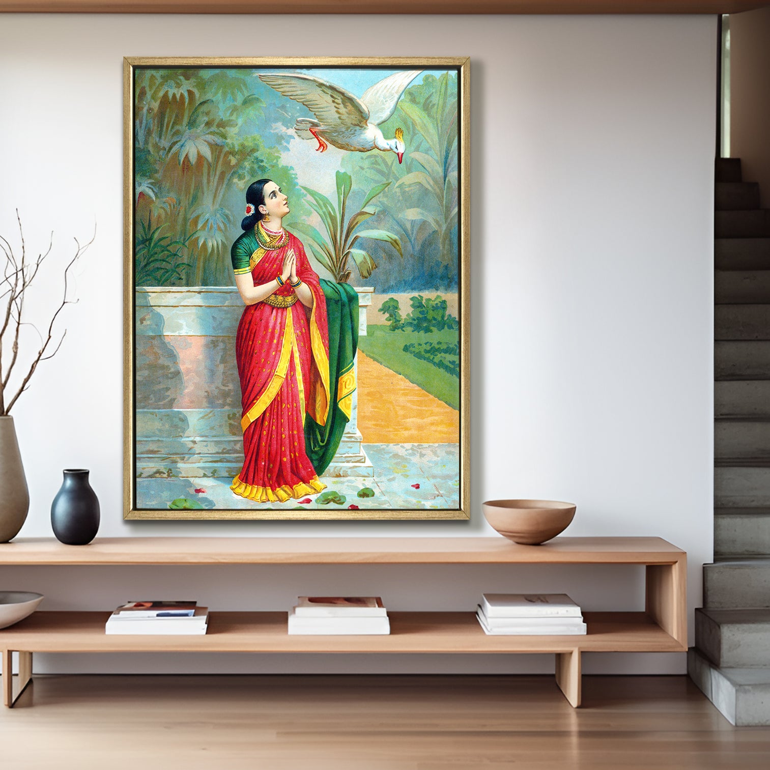 This HD canvas reproduction brings the beauty of Varma’s original masterpiece into your home with museum-quality precision, making it perfect for living rooms, bedrooms, offices, hotels, and gallery walls.