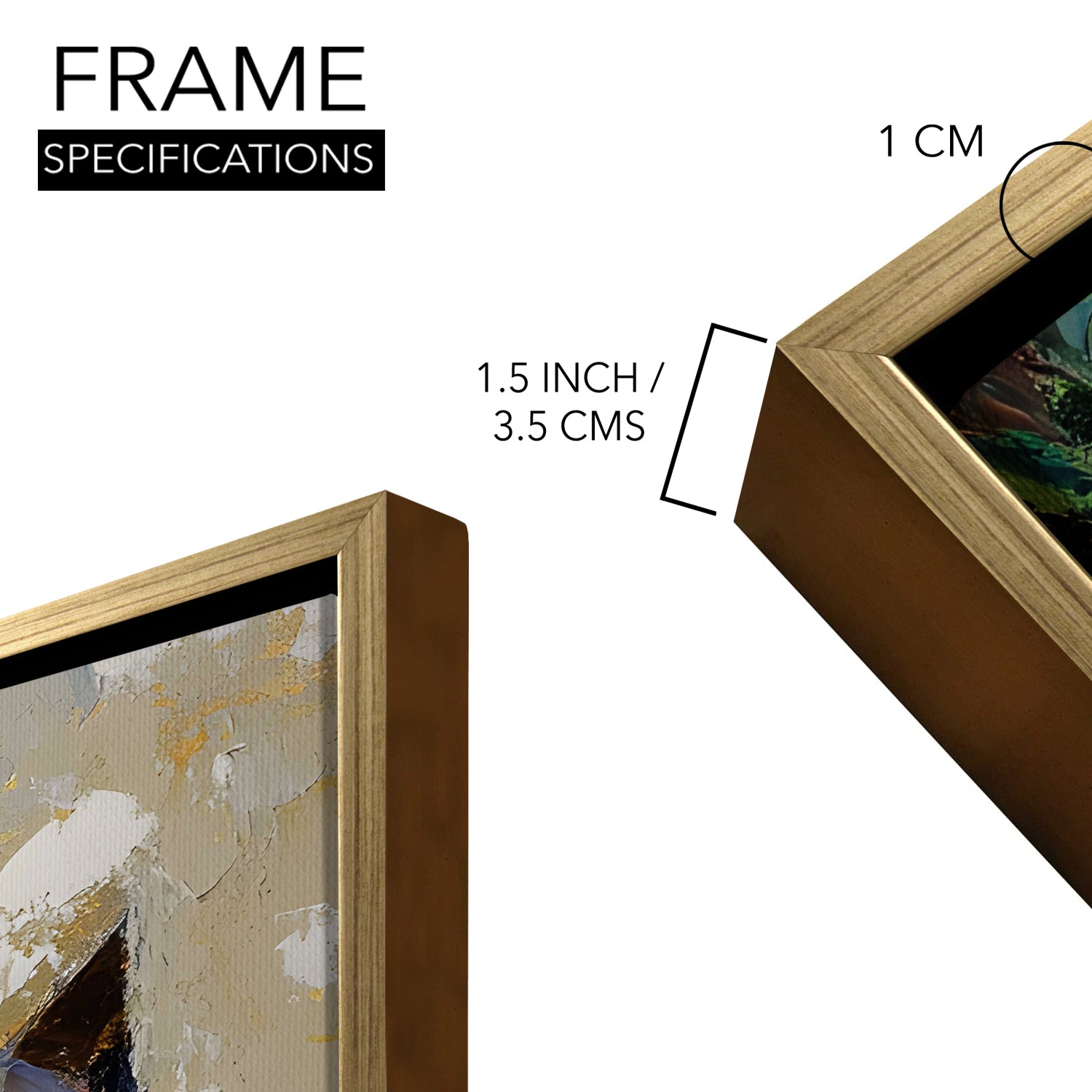 - Golden Floater Framed: Professionally stretched and mounted on a solid wooden frame for a sleek, contemporary finish that doesn’t require additional framing. Versatile Wall Art for Living Room. Perfect for Bedroom, Living Room, Music Room, Dining Room, Hallway Gallery Wall, Cafés / Restaurants, Boutiques or Salons etc.
